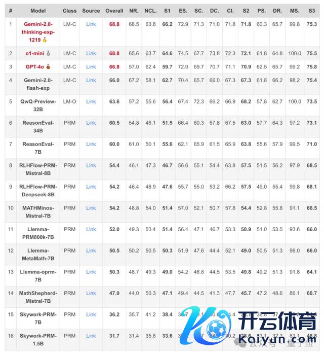 研究东谈主员测试了 15 个模子,包括开源 PRMs ( Skywork-PRM, Llemma-PRM, MATHMinos-Mistral,MathShepherd-Mistral, RLHFlow-PRM ) 和教唆为 Critic Models 的优秀闭源谈话模子 ( GPT-4o, o1-mini,Gemini-2 ) 。