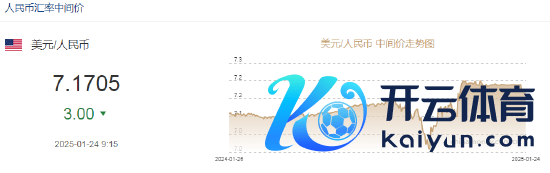 1月24日开yun体育网,东说念主民币兑好意思元中间价报7.1705,上调3点。