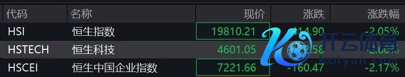 适度发稿,香港恒生指数跌约2%,恒生科技指数跌2.6%。
