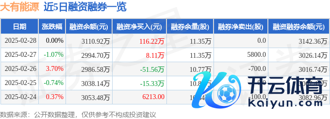大有动力融资融券信息清晰,融资方面,当日融资买入242.32万元,融资偿还126.1万元,融资净买入116.22万元。融券方面,融券卖出0.0股,融券偿还0.0股,融券余量11.35万股,融券余额31.44万元。融资融券余额3142.36万元。