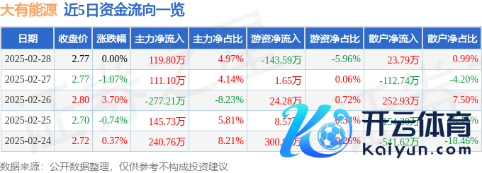 本站音讯,浪漫2025年2月28日收盘,大有动力(600403)报收于2.77元,上升0.0%,换手率0.36%,成交量8.67万手,成交额2409.32万元。