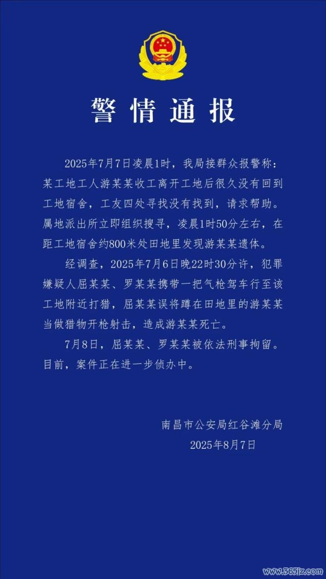 欧洲杯体育南昌警方通报工东说念主遭枪击身一火:积恶嫌疑东说念主携气枪打猎,误将游某某当成猎物-开云「中国」kaiyun体育网址登录入口