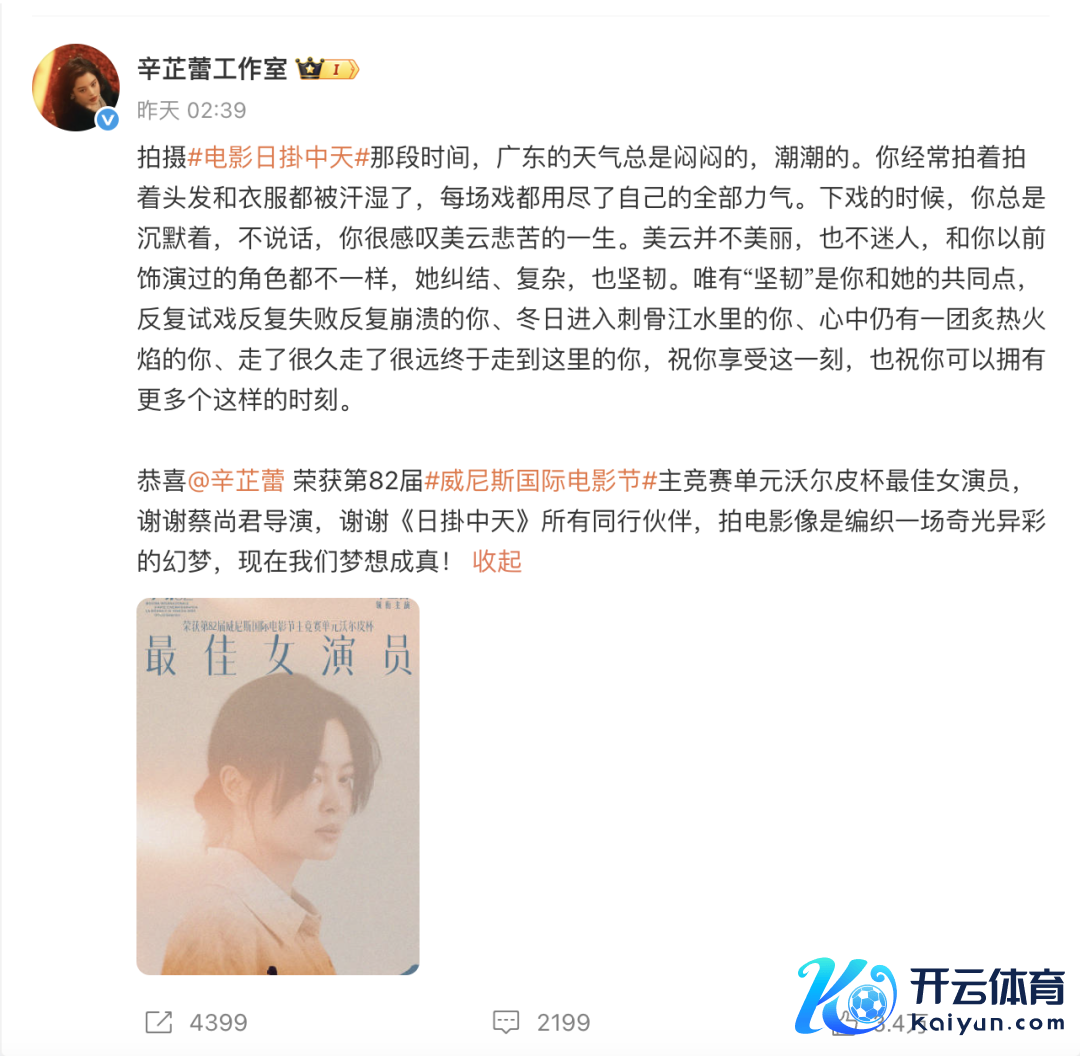 她亦然内娱第一位拿到这个奖的80后女演员,一下子从白玉兰奖、飞跃成海外A类电影节影后,真的很争光!